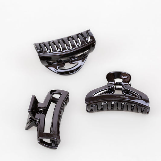 Clame de păr medii cu forme diverse și textura lucioasă, set 3 buc - Negru