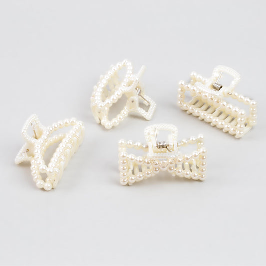 Clame de păr medii cu perle, forme diverse, set 4 buc - Alb
