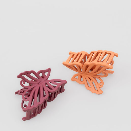Clame de păr medii în formă de fluture cu textură de silicon, set 2 buc - Bordo, Portocaliu