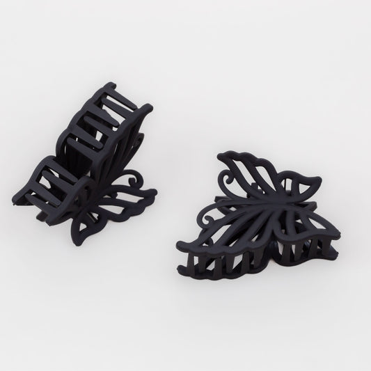 Clame de păr medii în formă de fluture cu textură de silicon, set 2 buc - Negru
