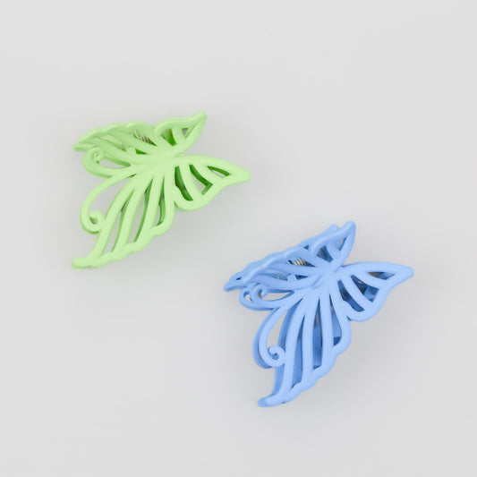 Clame de păr medii în formă de fluture cu textură de silicon, set 2 buc - Verde, Albastru