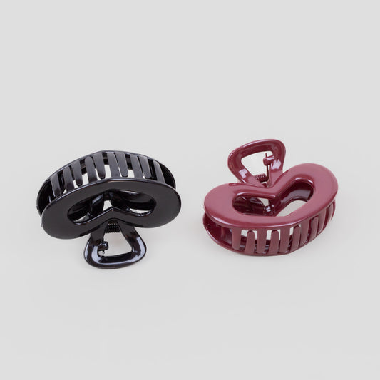 Clame de păr medii în formă de inimă cu textură lucioasă, set 2 buc - Negru, Bordo