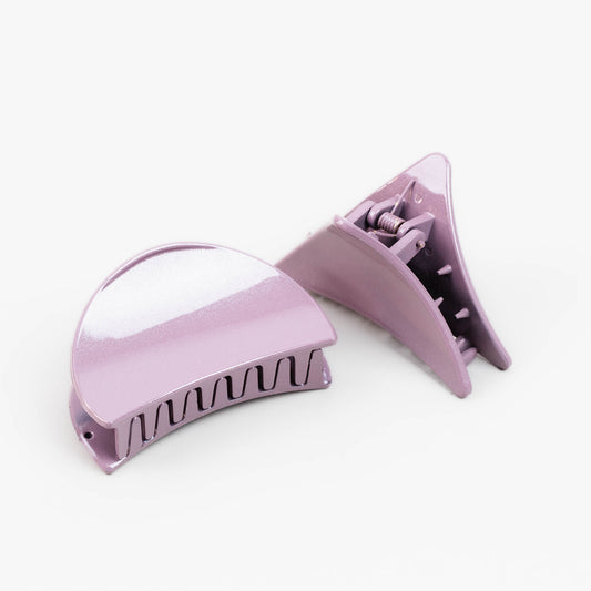 Clame de păr medii în formă de triunghi și semilună cu textură lucioasă, set 2 buc - Mov