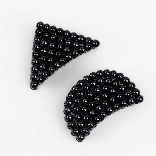 Clame de păr medii în formă de triunghi și semilună, textură lucioasă cu bule, set 2 buc - Negru