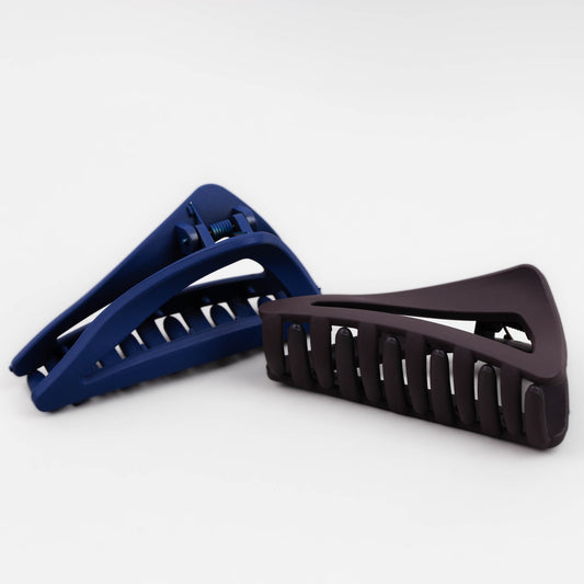 Clame de păr medii în formă triunghiulară cu textură de silicon, set 2 buc - Maro Închis, Albastru
