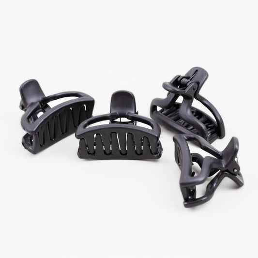 Clame de păr mici în stil minimal cu textură mată, set 4 buc - Negru