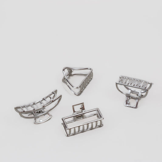 Clame de păr mici metalice cu forme geometrice, set 4 buc - Argintiu
