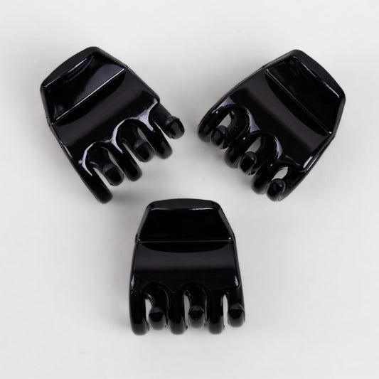 Clame de păr mici simple cu textură fină lucioasă, set 3 buc - Negru