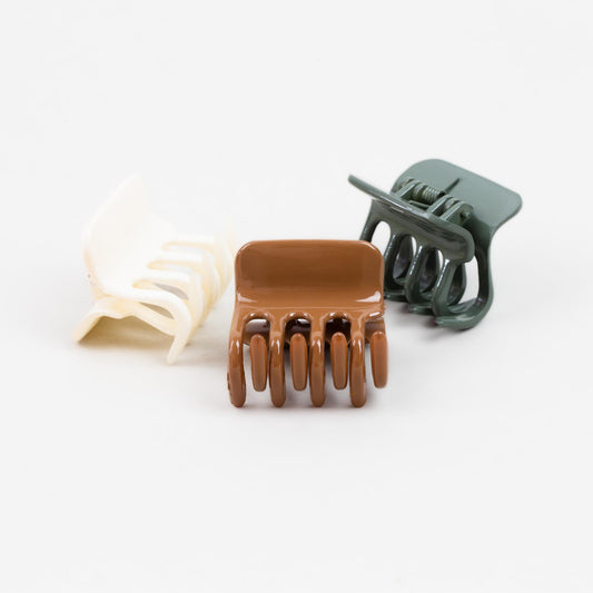 Clame de păr mici în stil minimal cu textură mată, set 3 buc - Negru, Maro