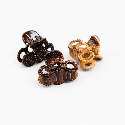 Clame de păr mici texturate cu forme rotunde, set 3 buc - Maro