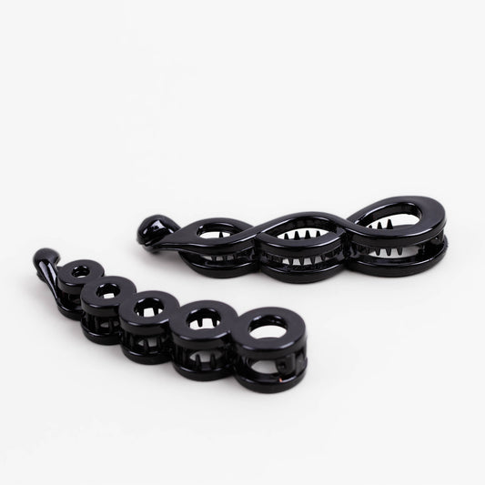 Clame de păr tip banană cu cercuri și forme ondulate, textură lucioasă, set 2 buc - Negru