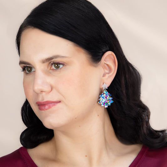 Set cercei cu motive de Crăciun Twinkle Trees, 2 perechi - Metallic Duo