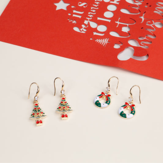 Set cercei fermecători cu tematică de Crăciun, 9 perechi, ambalaj inclus