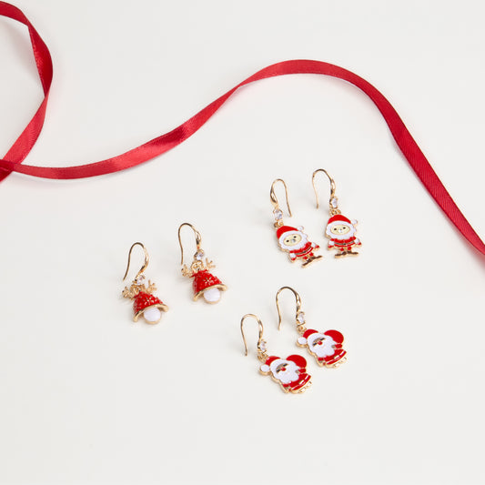 Set cercei cu motive de Crăciun Holiday Fun, 3 perechi - Roșu