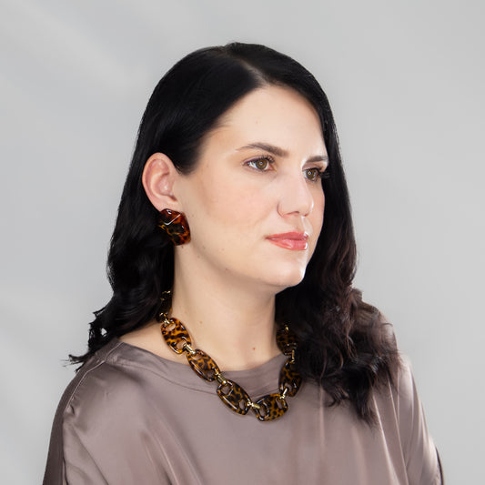 Colier tip lanț cu animal print Wild Chain - Maro