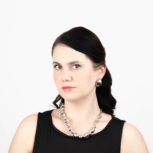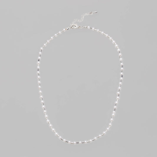 Colier cu zale ovale și mărgele lucioase - Argintiu