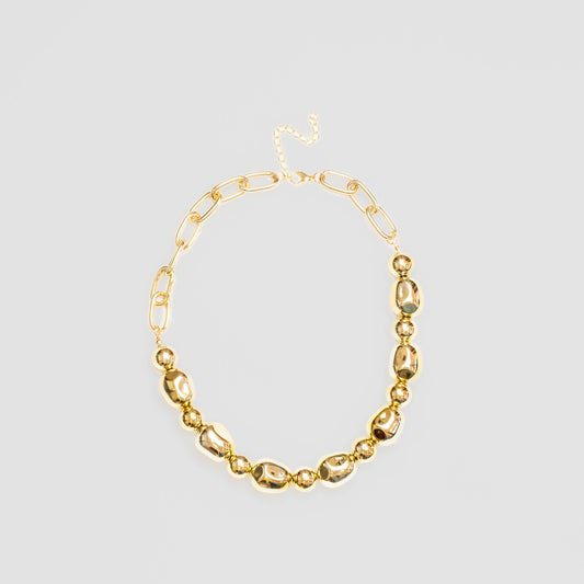 Colier cu zale ovale și mărgele lucioase - Auriu