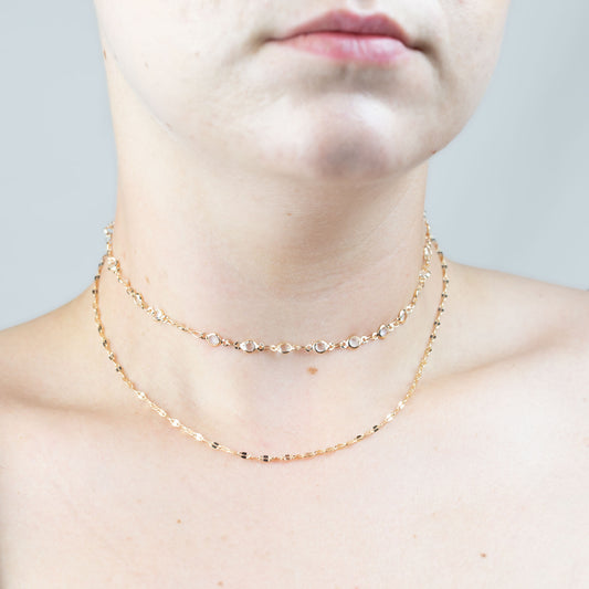 Colier dublu la baza gâtului cu lanțuri și pietre mici - Auriu