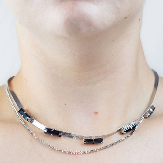 Colier dublu la baza gâtului cu pietre negre - Argintiu