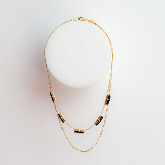 Colier dublu la baza gâtului cu pietre negre - Auriu