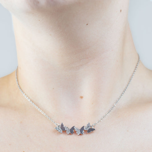 Colier la baza gâtului cu pandantiv fluturași cu ștrasuri - Argintiu