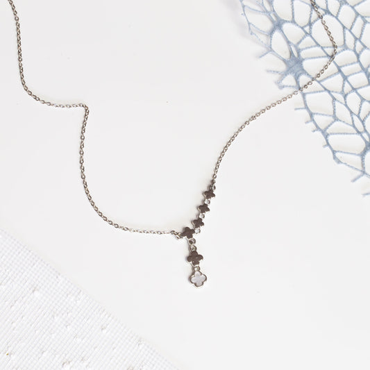 Colier la baza gâtului cu pandantiv trifoi cu patru foi - Argintiu