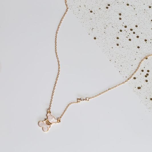 Colier la baza gâtului cu pandantiv ursuleț sidefat roz