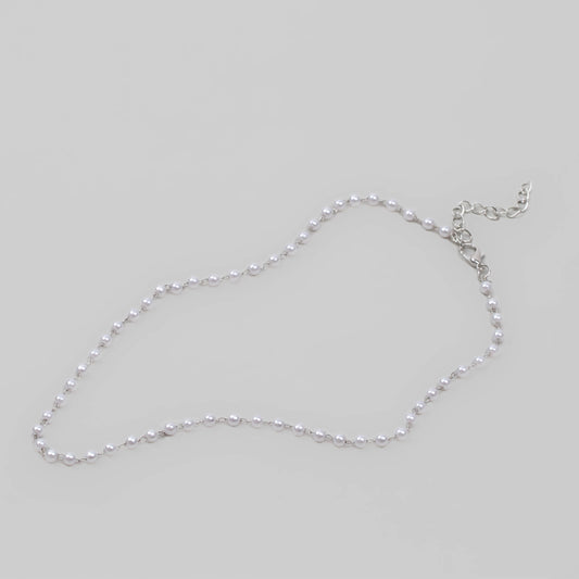 Colier la baza gâtului cu perle mici pe lanț - Argintiu