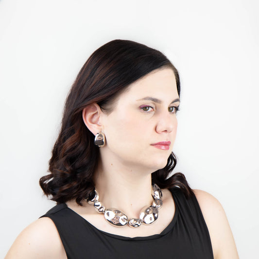 Colier cu ovaluri abstracte - Argintiu