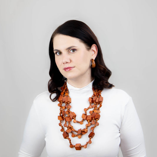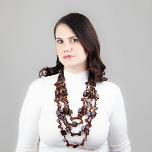 Colier multiplu din lemn cu secțiuni geometrice - Maro