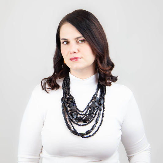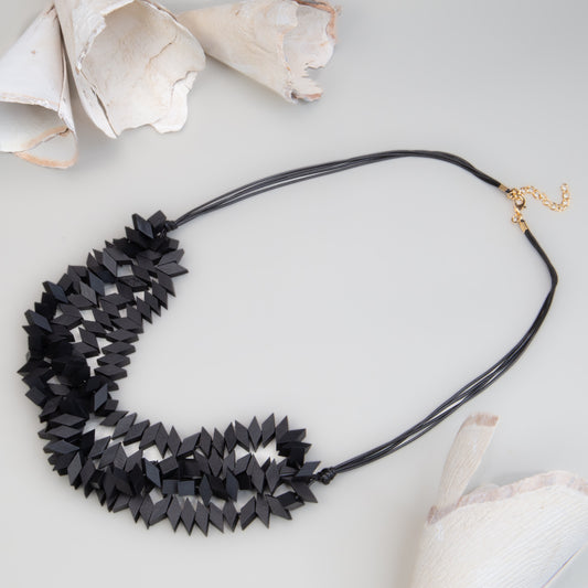 Colier multiplu din lemn cu secțiuni geometrice - Negru