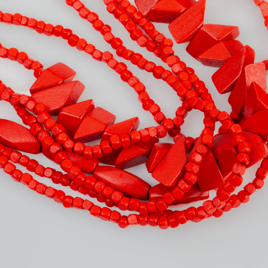 Colier multiplu din lemn cu secțiuni geometrice - Roșu