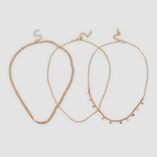 Coliere la baza gâtului cu lanț și stele, set 3 buc - Auriu