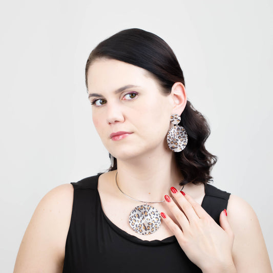 Set colier cercei cu cercuri mari și animal print - Argintiu
