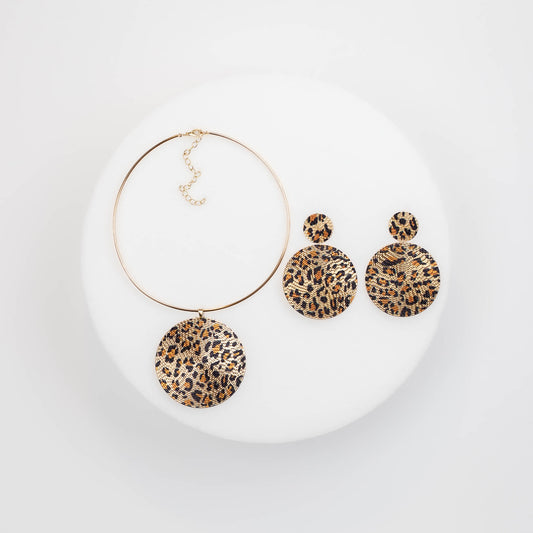 Set colier cercei cu cercuri mari și animal print - Auriu