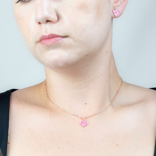 Set colier cercei cu pandantiv floare sidefată roz