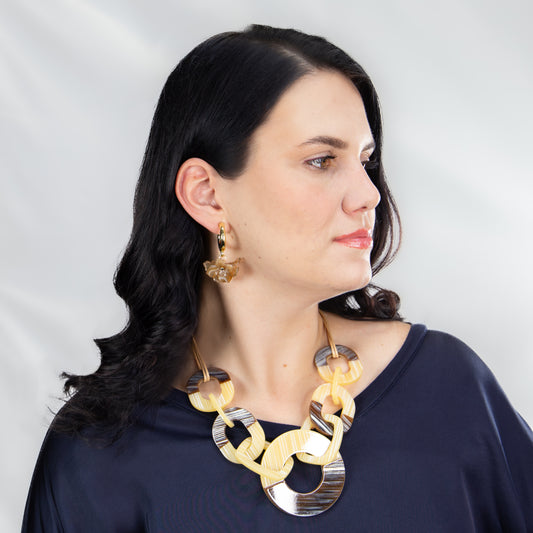 Colier cu ovaluri metalice - Negru Auriu