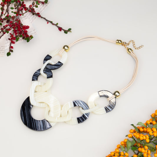 Colier cu verigi unite Contrast Chic - Negru, Bej