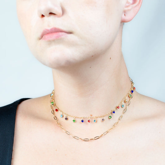 Colier dublu cu lanțuri și pietre colorate