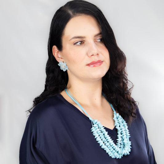 Colier lung din lemn Aqua Harmony - Turcoaz