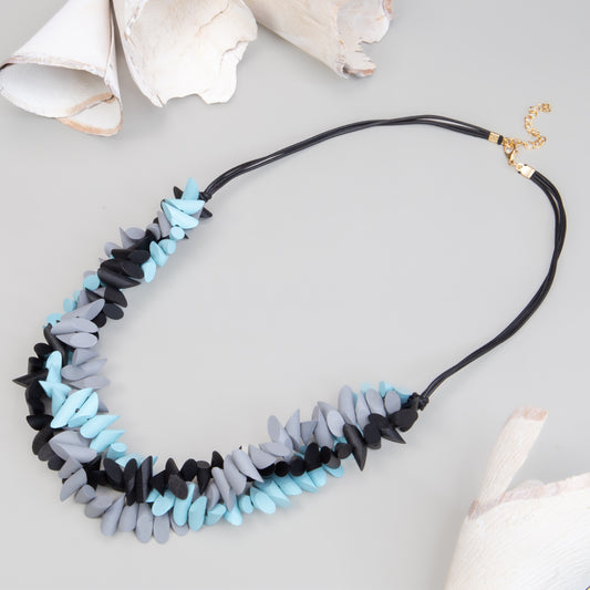 Colier lung din lemn Charcoal Lagoon - Turcoaz, Negru, Gri