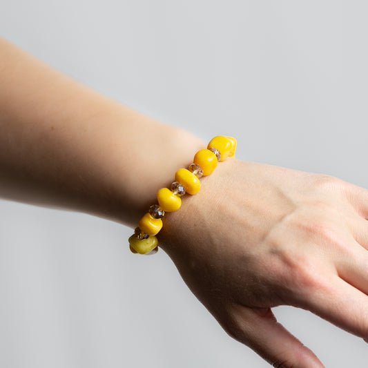Brățară elastică cu mărgele marmorate și pietre GemFusion - Galben