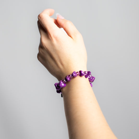 Brățară elastică cu mărgele marmorate și pietre GemFusion - Mov