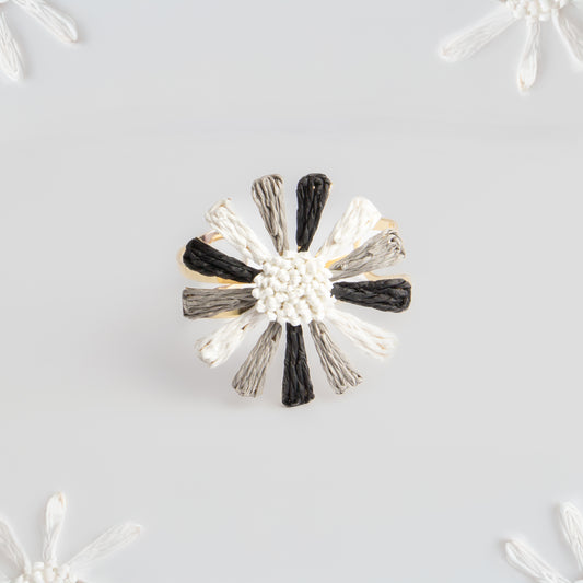 Brățară reglabilă solar flower din ratan - Negru, Alb