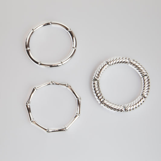 Brățări elastice cu secțiuni geometrice trio arches, set 3 - Argintiu