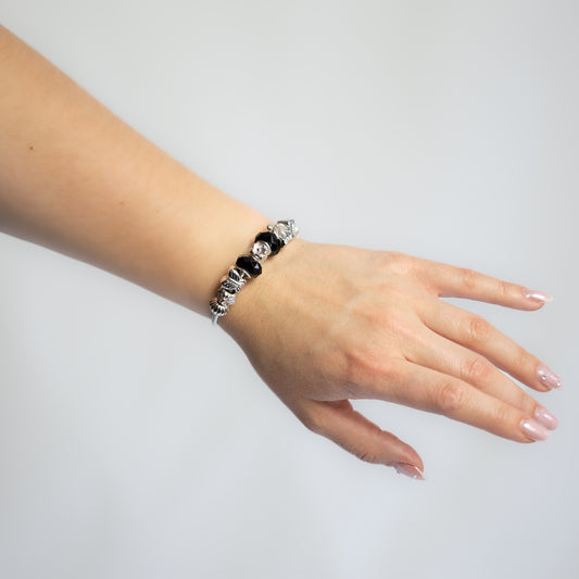 Brățară reglabilă black bloom cu biluțe - Argintiu