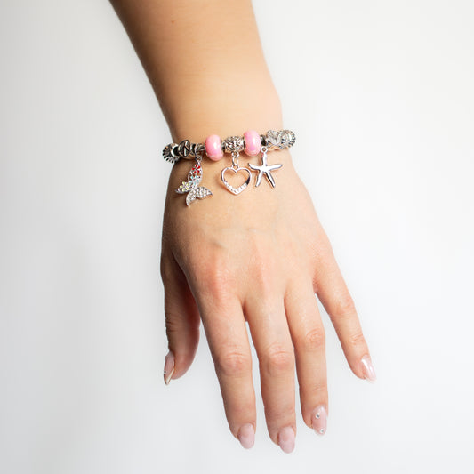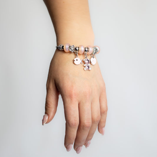 Brățară reglabilă sea of love cu charm-uri și pietre - Argintiu, Roz