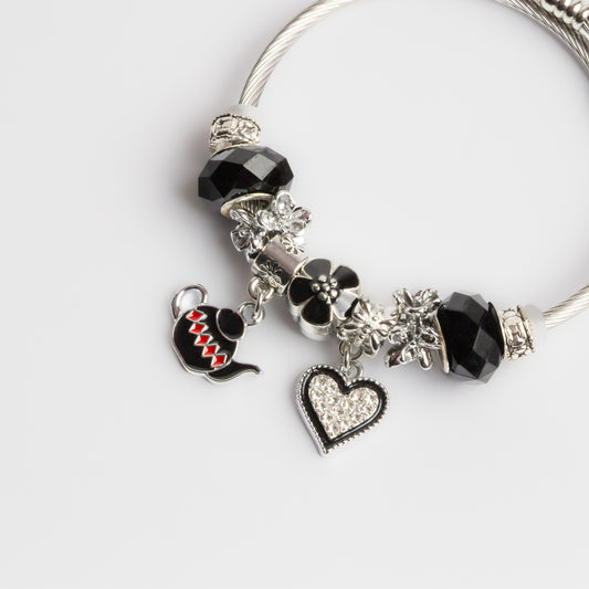 Brățară reglabilă tea love cu charm-uri - Argintiu, Negru