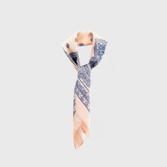 Eșarfă damă din satin cu imprimeu oriental, 70 x 70 cm - Champagne, Albastru