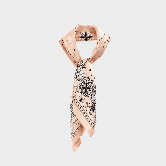 Eșarfă damă din satin, imprimeu cu flori abstracte și steluțe, 60 x 60 cm - Champagne